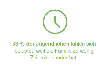 Jeder und jede dritte Jugendliche fühlt sich belastet, weil die Familie zu wenig Zeit miteinander hat.