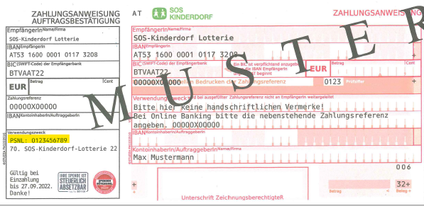 Ihre PSN-Nummer ist auf der Auftragsbestätigung in Ihrem Lotterieschreiben zu finden.