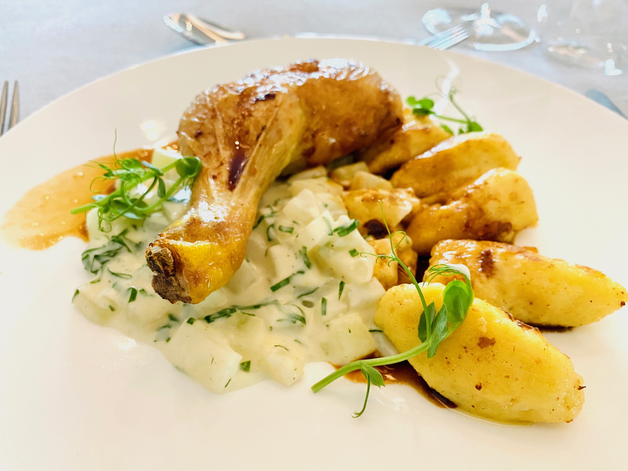 Hendlhaxn mit Kräutergnocchi