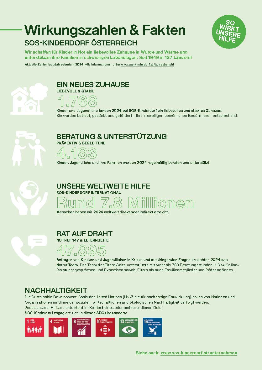 Erfahren Sie mehr über die Wirkung unserer Arbeit durch Zahlen und Fakten. Dieses Dokument bietet einen Einblick in die positiven Auswirkungen unserer Programme und wie sie das Leben von Kindern und Familien weltweit verändern.