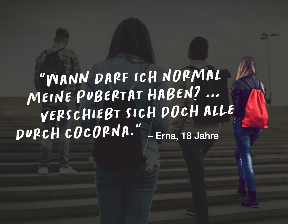 Um selbstbestimmt ihr Leben zu gestalten, brauchen junge Menschen ein Umfeld, das bestärkt, motiviert und Rückenwind gibt. Für viele Jugendliche sind das die Eltern, Geschwister oder Großeltern, aber auch Freundinnen und Freunde, Vereine oder Jugendzentren. Seit der Corona-Krise stehen viele Bezugspersonen plötzlich nicht mehr wie gewohnt zur Verfügung – weil der Kontakt eingeschränkt ist oder vertraute Personen selbst mit Ängsten und Sorgen kämpften.