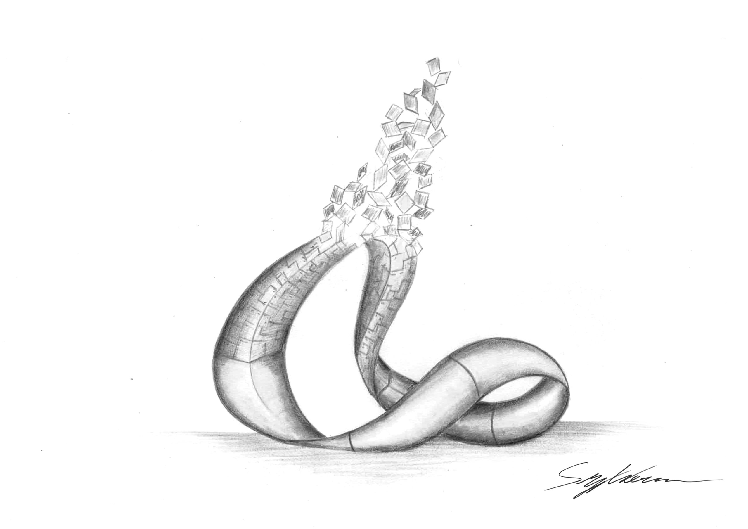 Wir sehen ein stilisiertes Nest in Form einer Möbiusschleife. Sie symbolisiert die Ausgeglichenheit unseres äußeren und inneren Wesens sowie die endlose Liebe.