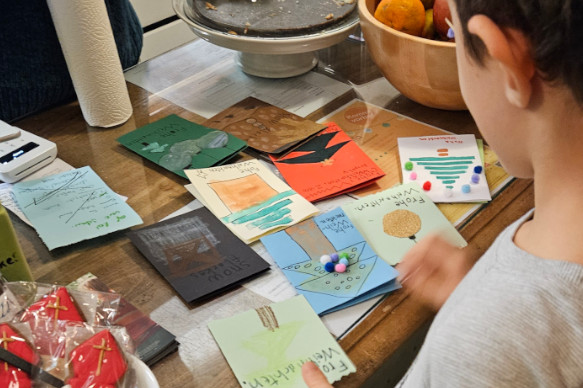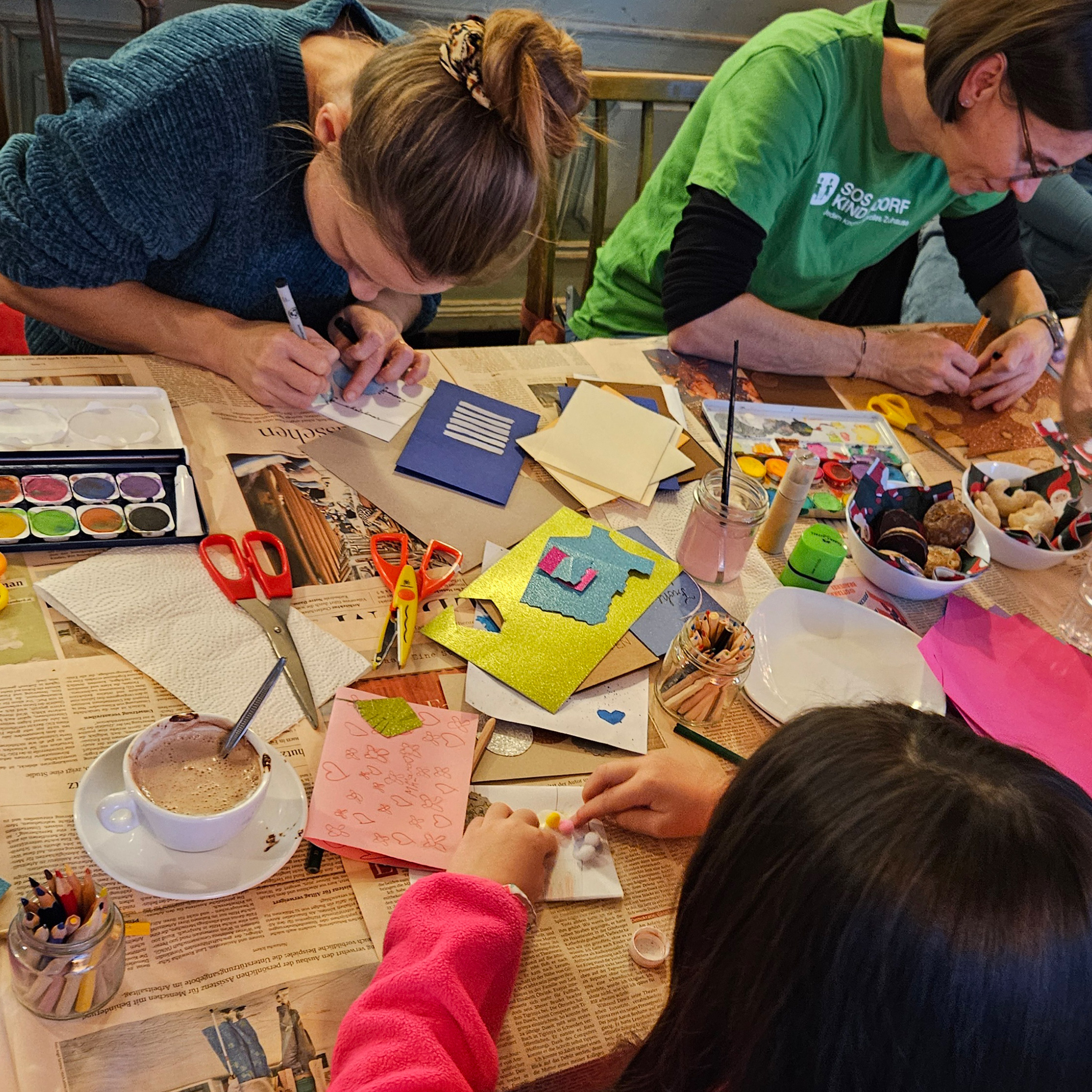 Fröhliches Winterbasteln - im Salon im Park. Gemeinsam mit Nachbar*innen und Freund*innen hat das Ready Team Nordbahnviertel festliche Grußkarten und bunte Geschenkanhänger gebastelt! Gemeinsam kreativ - es wurde gemalt, geschnitten und geklebt. Eingeladen waren alle Kinder und ihre Eltern, Großeltern oder andere Begleitpersonen.