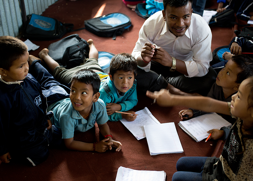 Über 35.000 Klassenzimmer wurden durch das Erdbeben 2015 in Nepal zerstört. Durch die Bemühungen von internationalen Organisationen, NGOs und der nepalesischen Regierung konnte der Schulbesuch in vielen Regionen ein Monate nach dem Erdbeben in improvisierten Schulklassen wiederaufgenommen werden. Dennoch leben bis heute noch viele Familien in Lagern und vertriebene Kinder haben nur erschwerten Zugang zur Schule.