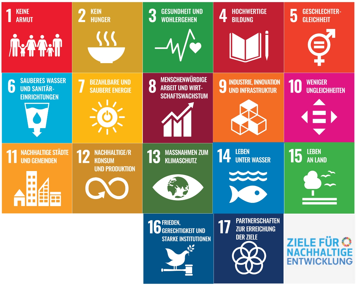 Die Sustainable Development Goals (SDGs, deutsch: Ziele für nachhaltige Entwicklung) wurden 2015 von den Mitgliedsstaaten der Vereinten Nationen (United Nations) verabschiedet und bestehen aus 17 Haupt- und 169 Unterziele, die im Sinne der sozialen, wirtschaftlichen und ökologischen Nachhaltigkeit verfolgt werden sollen.