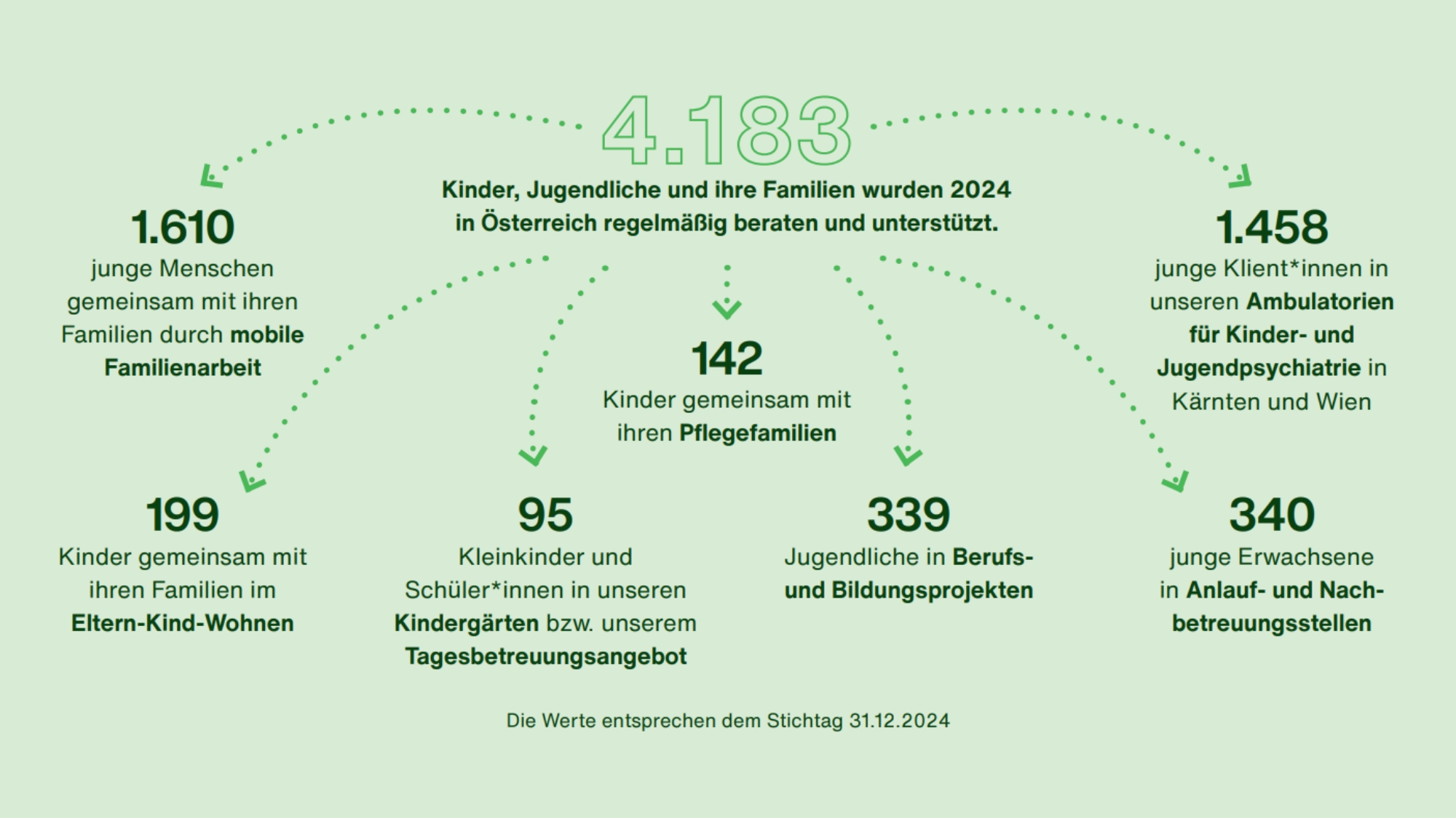 Die Kinder und Jugendlichen werden in Wohngruppen mit unterschiedlichen Schwerpunkten (z.B. Wohngruppen für Jugendliche, Wohngruppen für Kinder, Krisenwohngruppen, Therapeutische Wohngruppen) und in Gruppengrößen von 4 bis 12 betreut.